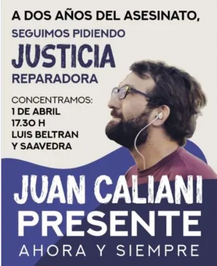 Este miércoles se cumplen dos años del asesinato del periodista neuquino Juan Caliani, ocurrido el 1 de abril de 2024 en su vivienda del barrio La Sirena. En ese marco, familiares, amigos y organizaciones convocaron a una marcha bajo el lema “Pedimos Justicia Reparadora”.
