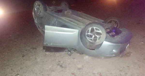 De esta manera, el auto terminó volcado con las cuatro ruedas hacia arriba sobre la banquina, al borde de una pendiente pronunciada, en lo que podría haber sido una tragedia. Por suerte ninguno de los ocupantes del vehículo resultó con heridas de gravedad.