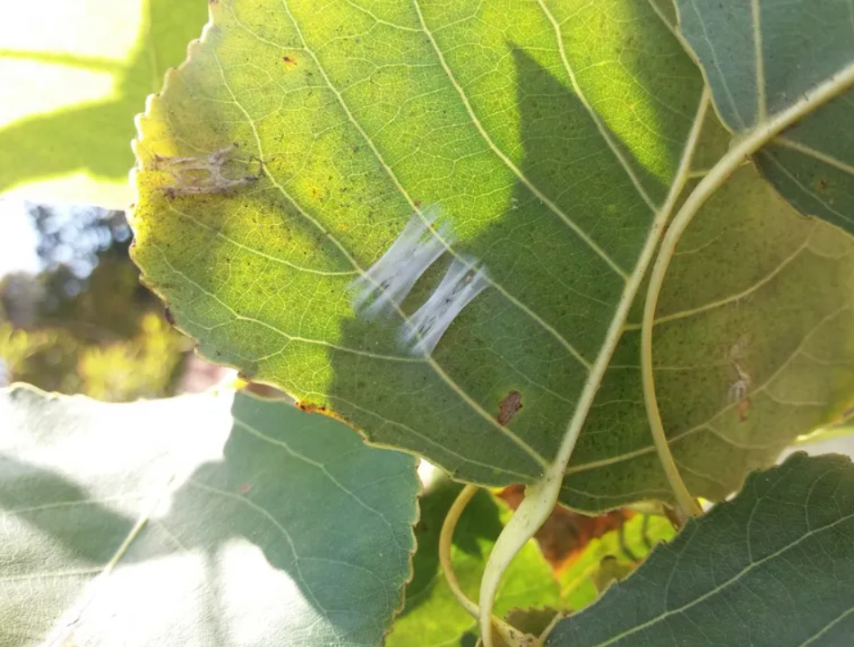 Se trata de un insecto de tamaño muy pequeño, perteneciente al orden Lepidoptera, el mismo que agrupa a mariposas y polillas. “Es un minador de hojas, lo que significa que el daño principal ocurre dentro del tejido foliar del álamo”, explicó Garrido. Aunque los adultos son blancos y difíciles de detectar a simple vista, los daños en el follaje suelen ser la señal más evidente de su presencia.