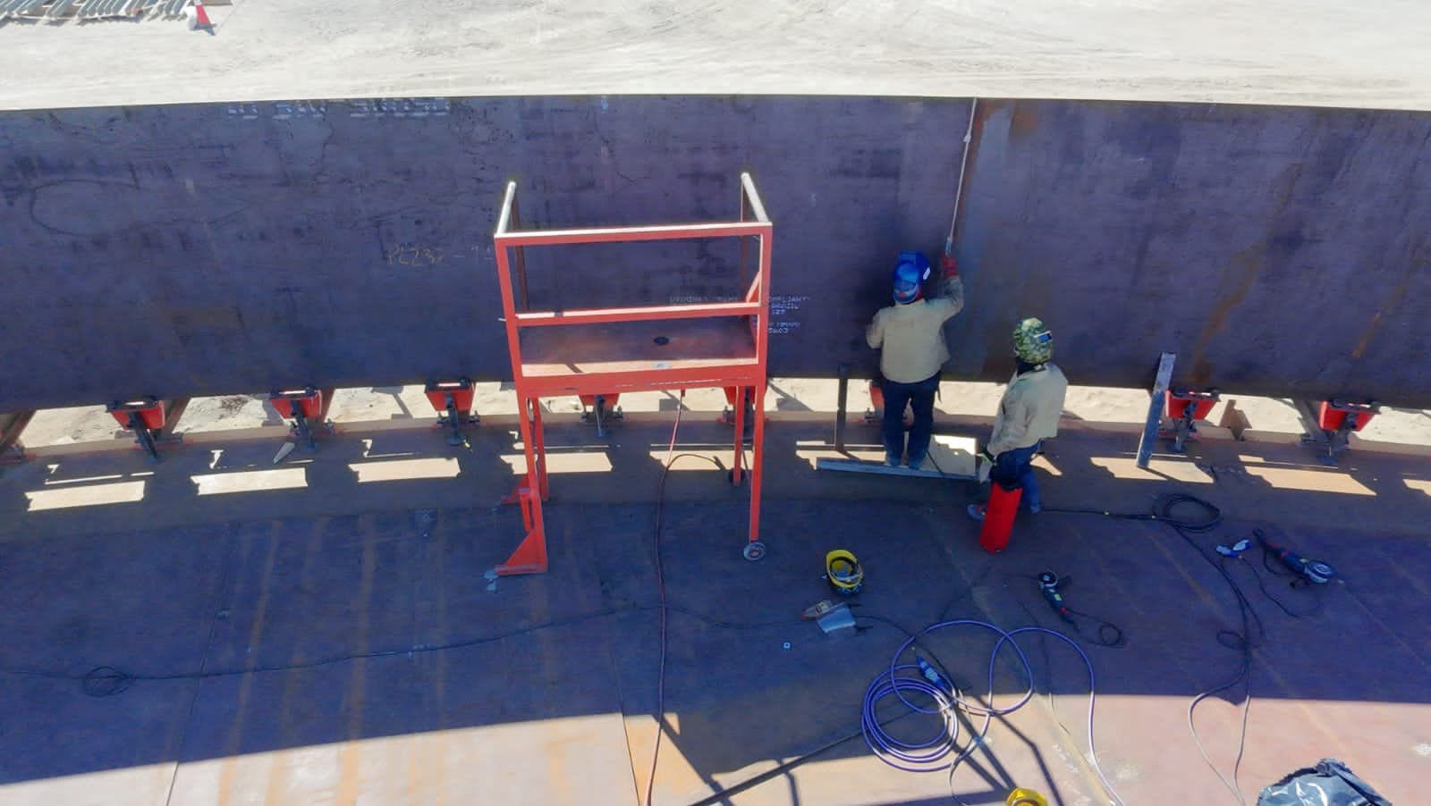En Allen se levantan tanques de almacenamiento de 55.000 m³ y estaciones de bombeo. En Punta Colorada, el movimiento de suelos y la llegada de 8.000 toneladas de acero marcan el progreso en la construcción de los cinco grandes tanques de 120.000 m³.