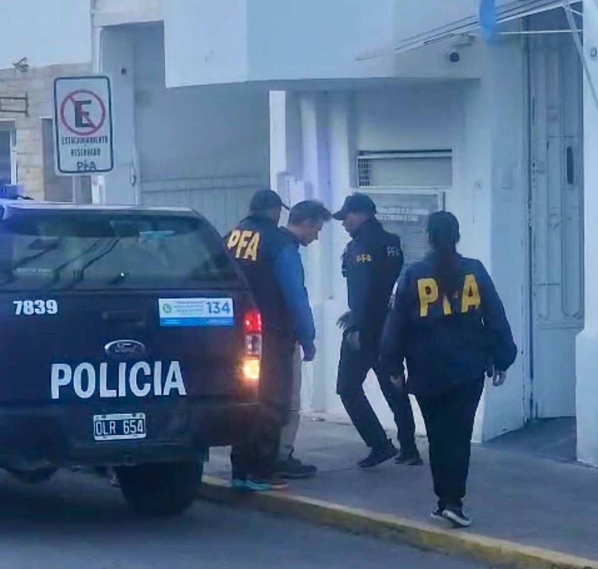 A las 18.30, el convoy policial regresó a Viedma. Tres camionetas ingresaron a la Delegación de la Policía Federal sobre la calle Garrone, en pleno centro de la ciudad. El tránsito fue interrumpido y, en pocos minutos, decenas de curiosos y transeúntes se acercaron al cordón de seguridad para presenciar la llegada del detenido.