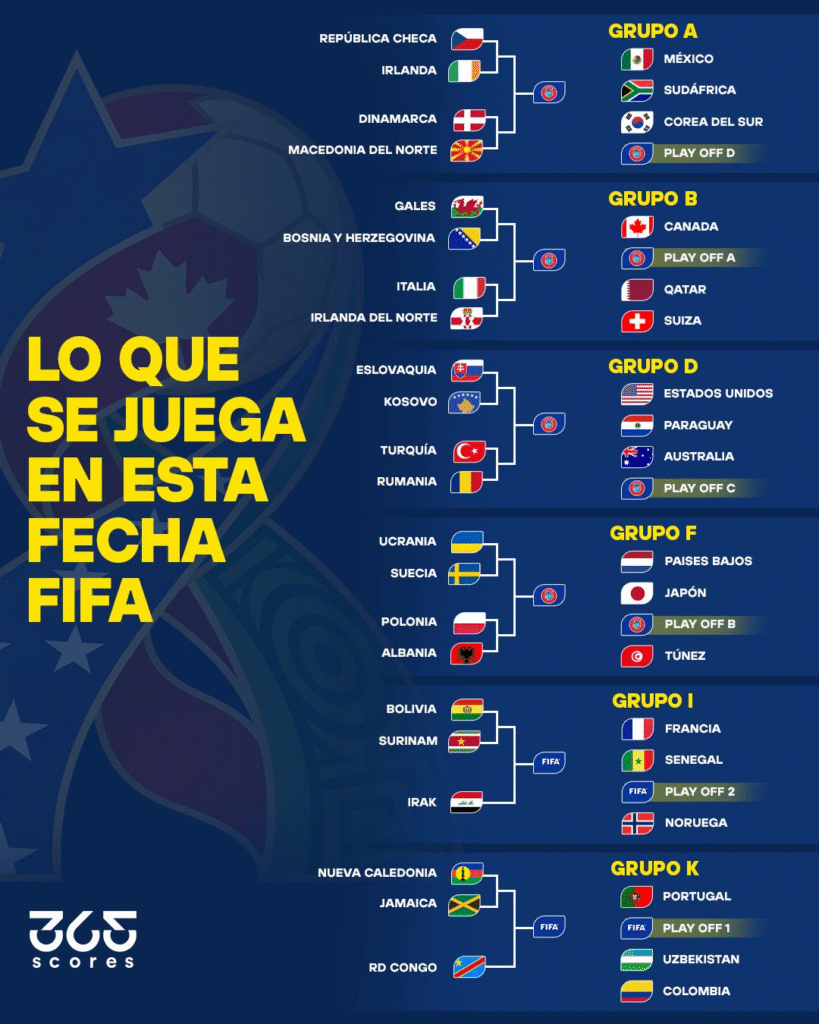 En paralelo al cruce entre Bolivia y Surinam, el repechaje europeo pone en juego cuatro plazas para el Mundial 2026 con 16 selecciones que buscan su lugar. Potencias como Italia, Suecia, Polonia y Ucrania aparecen como candidatas en cruces directos que se resolverán entre semifinales y finales a partido único.