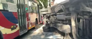 Choque y vuelco en Almagro: dos heridos tras el impacto entre una camioneta y un colectivo noviembre 26, 2025