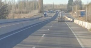 Policía en moto colisionó con pallets que cayeron de un camión en Cipolletti