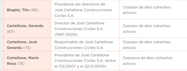 • José Gerardo Cartellone (73): Responsable de la compañía, coautor de diez cohechos.