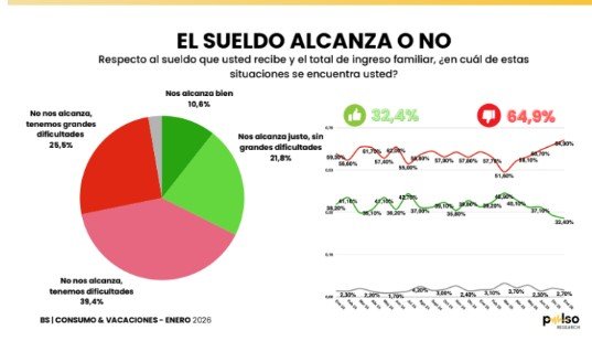 Un relevamiento nacional realizado por la consultora privada Pulso Research advierte sobre el creciente estrés económico que atraviesa la clase media. El estudio señala que la mayoría de las familias enfrenta serios problemas para sostener sus gastos mensuales, mientras se profundiza la reducción en el consumo de alimentos y aumenta el endeudamiento en los hogares.
