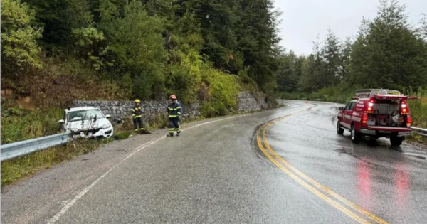 El primer accidente fue a la altura del sector Camping Quintupuray, en una curva del Lago Nahuel Huapi cuando el conductor de un Renault Sandero blanco abandonó la calzada y chocó contra el guardarraíl de la banquina.