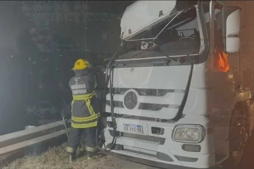 Dos personas resultaron gravemente heridas tras un choque entre un micro de larga distancia y un camión en el kilómetro 77 de la Ruta 9, a la altura de Campana.