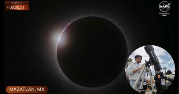 La Administración Nacional de Aeronáutica y el Espacio (NASA, por sus siglas en inglés) ya arrancó la transmisión minuto a minuto del eclipse solar total de este lunes 8 de abril. En el video, que se puede ver a través de su canal de YouTube, ya se puede apreciar cómo la Luna se interpone entre el Sol y la Tierra en Mazatlán, México.