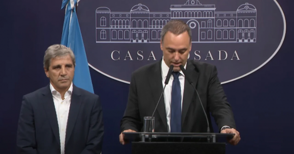 Al hacer el anuncio en la Casa Rosada, el ministro de Economía, Luis Caputo, destacó que “este gobierno vino a bajar impuestos”.