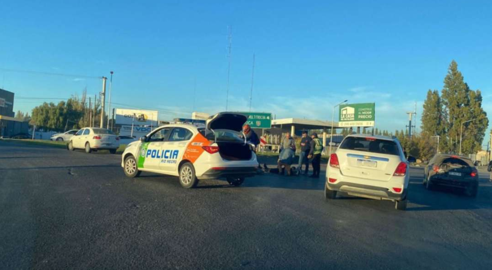 Cerca de las 8:30, un Fiat Siena que circulaba desde Ruta 151 hacia Ruta 22 chocó con una motocicleta que ya transitaba la rotonda en dirección Cipolletti–Neuquén.