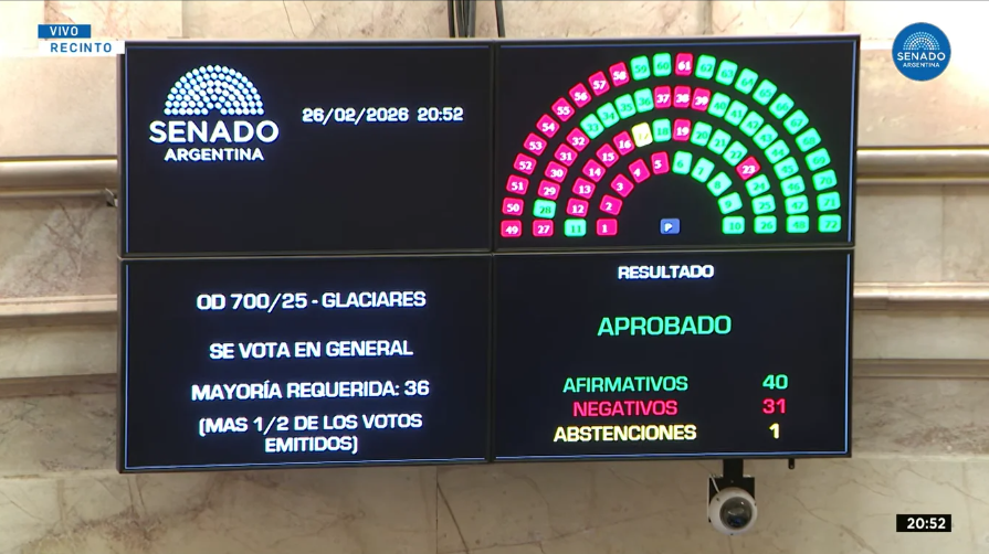 El Senado de la Nación dio media sanción a la reforma de la Ley de Glaciares, en una sesión marcada por un fuerte debate sobre el impacto de la iniciativa en las provincias cordilleranas y en el desarrollo de la actividad minera. El proyecto obtuvo 40 votos afirmativos, 31 negativos y una abstención.