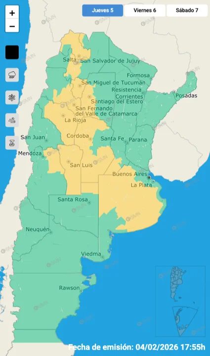 El Servicio Meteorológico Nacional (SMN) emitió alertas por tormentas fuertes con posible caída de granizo que afectarán este jueves a amplias regiones del país, incluyendo áreas de las provincias de Buenos Aires, Jujuy, Salta, Tucumán, Catamarca, La Rioja, Mendoza, San Luis, Santiago del Estero, Córdoba y La Pampa.