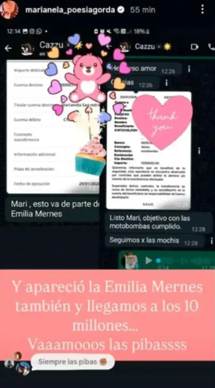 Por su parte, Emilia Mernes también se sumó con una donación significativa y utilizó su amplia llegada en redes sociales para amplificar el mensaje y visibilizar la gravedad de la situación ambiental que atraviesa la región.