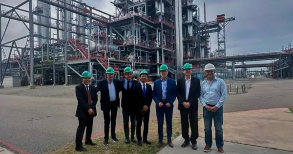 El ministro de Infraestructura de Neuquén llevó a la Planta Industrial de Agua Pesada (PIAP) a los directivos de la empresa japonesa Marubeni: Yasuhiro Aoto, director de Negocios Químicos para Sudamérica; Hiroshi Kamada, presidente de la empresa en Argentina; y Mario Sato, gerente de Químicos, Metales y Maquinarias en el país.