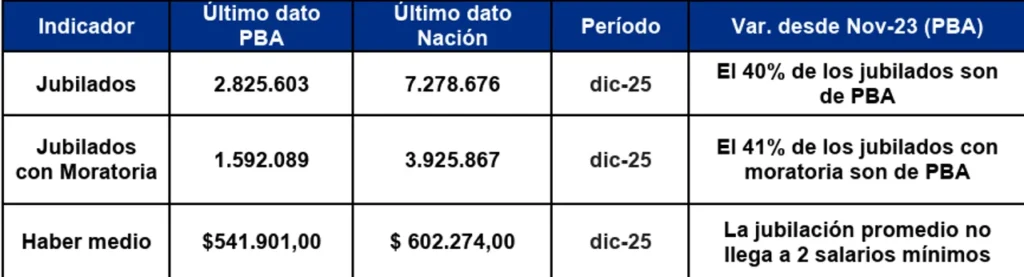 En el plano previsional, el informe detalló que la provincia concentra cerca del 40% de los jubilados del país, con un haber medio de $541.901, por debajo del promedio nacional de $602.274 y sin alcanzar el equivalente a dos salarios mínimos. Según el organismo, esto refleja un deterioro sostenido del ingreso real de los adultos mayores en el principal distrito del país.