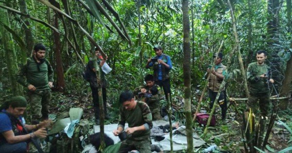 Los funcionarios colombianos confirmaron que se encontraron con vida los cuatro niños desaparecidos hace más de un mes en la selva del Guaviare después de que la avioneta en la que viajaban se estrellara.