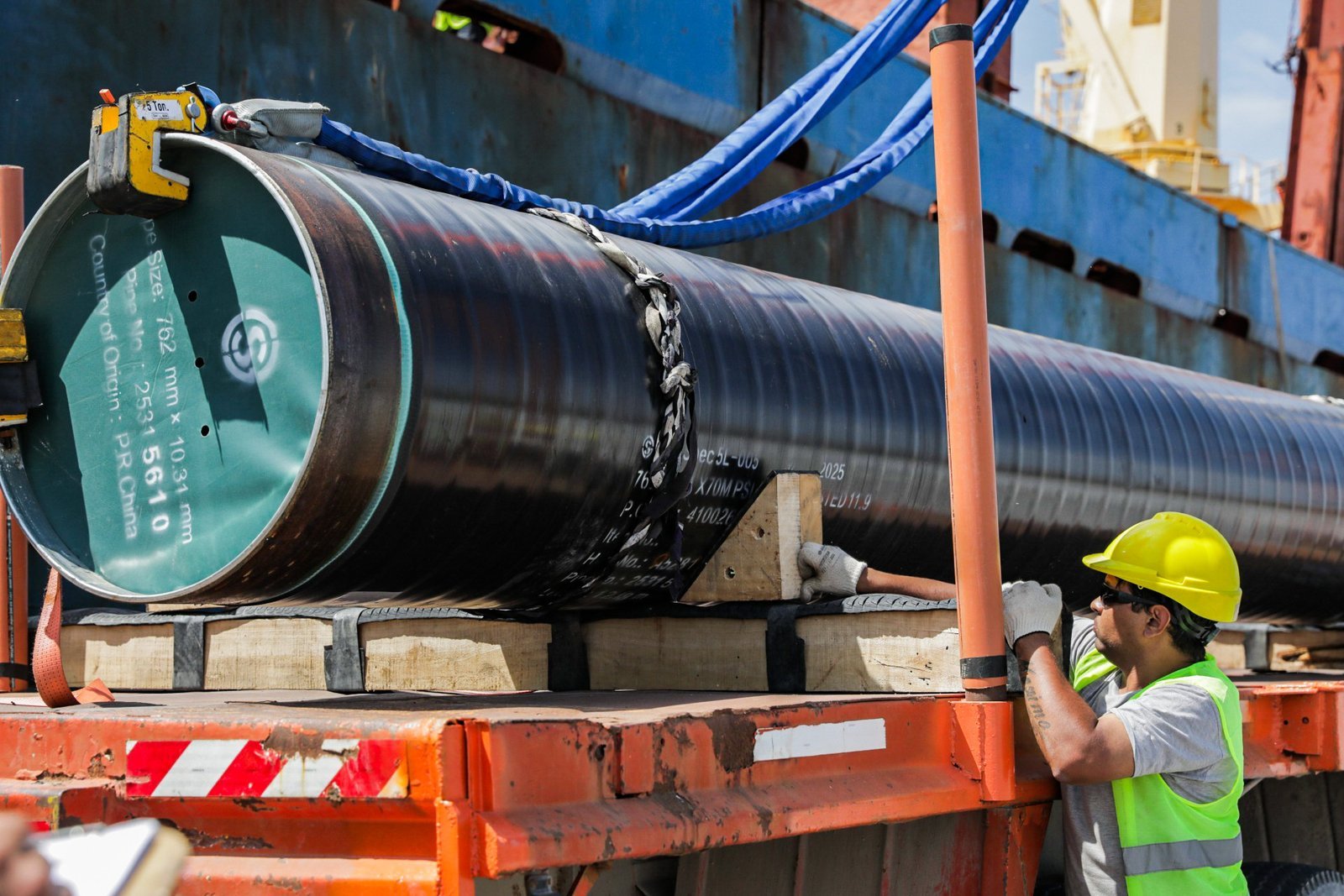 La operación incluyó la desestiba de 10.000 toneladas de tubos de acero, un total de 2.265 unidades de distintos diámetros que arribaron a bordo del buque Billion Star, un carguero de 175,53 metros de eslora y 29,4 metros de manga. Este material será utilizado en el desarrollo del proyecto Argentina FNLG, que permitirá exportar gas natural licuado producido en Vaca Muerta.