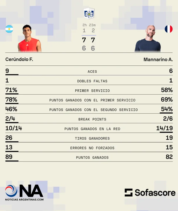 El argentino se impuso por 7-6(3) y 7-6(4) en un duelo de más de dos horas de juego. Pese a que por ranking llegaba como favorito, el zurdo francés era un escollo bravo y lo exigió al máximo durante todo el partido.