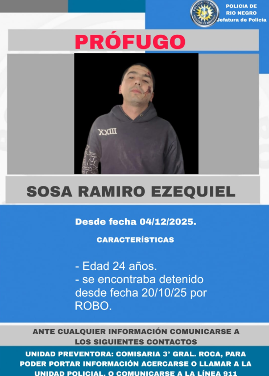 Desde la Policía solicitaron colaboración a la comunidad: cualquier información sobre el paradero de Torres o Sosa puede ser informada al 911 o en la dependencia más cercana. El pedido se sustenta en la calificación de “peligrosos” para ambos y en la gravedad de las causas judiciales que enfrentan.
