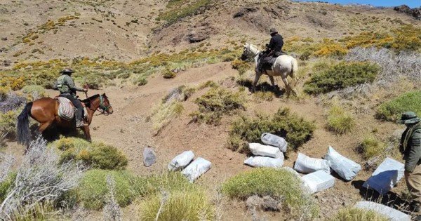 Los efectivos circulaban por unos caminos secundarios a la altura cajón “Los Chenques”, en cercanías a la Ruta Provincial N° 54 próximo al límite internacional fronterizo con Chile, cuando divisaron varios bultos de color blanco a la vera del lugar.