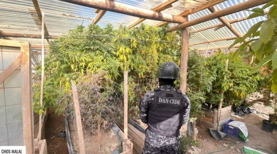 En el patio trasero de la vivienda funcionaba un invernadero clandestino, donde se desarrollaba el cultivo y procesamiento de la sustancia.