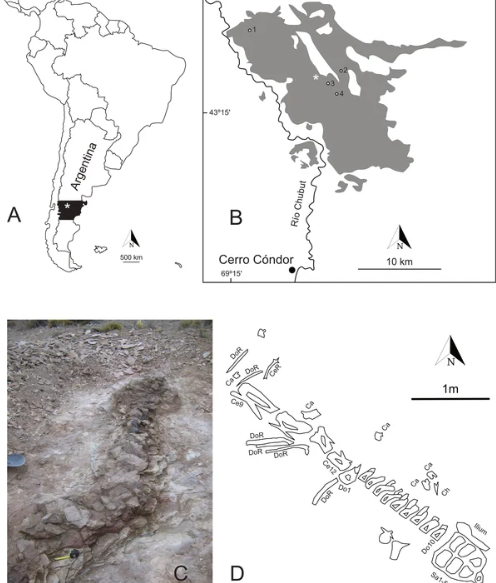 Los fósiles fueron encontrados en la formación Cañadón Calcáreo, en la Patagonia argentina, una región que ya ha aportado importantes descubrimientos paleontológicos.