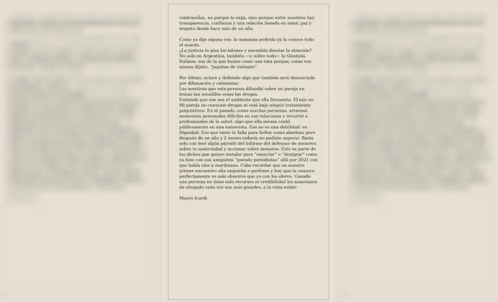 Según se vió por redes sociales, Wanda expuso los chats que mantuvo con su ex durante los últimos días, pero Icardi no se quedó callado y publicó en sus redes sociales una extensa y lapidaria carta para continuar aclarando los tantos.