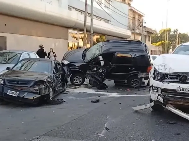 El siniestro involucró a siete vehículos y dejó al menos tres heridos. El momento quedó registrado por cámaras de seguridad.