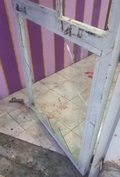 El hombre rompió el vidrio de la puerta y se cortó.