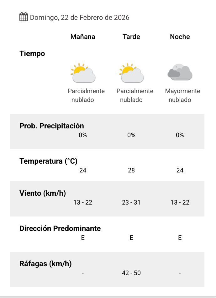 El Servicio Meteorológico Nacional anticipa que este 22 de febrero, la temperatura rondará entre los 21 y 28 grados.