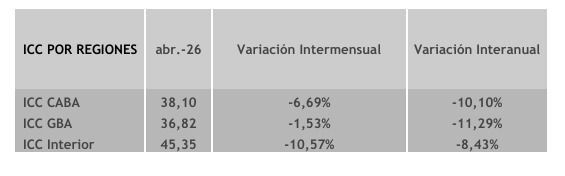El relevamiento se realizó entre el 6 y el 17 de abril de 2026 mediante encuestas telefónicas en distintos centros urbanos del país. El informe detalla que la caída se dio en todas las regiones: el Interior encabezó los retrocesos con un 10,57%, seguido por la Ciudad de Buenos Aires con 6,69% y el Gran Buenos Aires con 1,53%.
