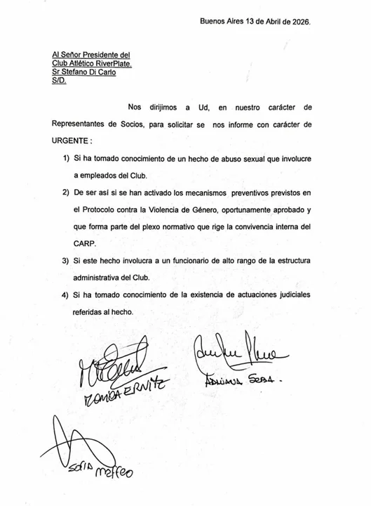 En paralelo, socios del club elevaron una nota al presidente Stefano Di Carlo para solicitar explicaciones urgentes. Entre los puntos planteados, pidieron saber si la dirigencia estaba al tanto de la denuncia y si se activaron los protocolos internos correspondientes.