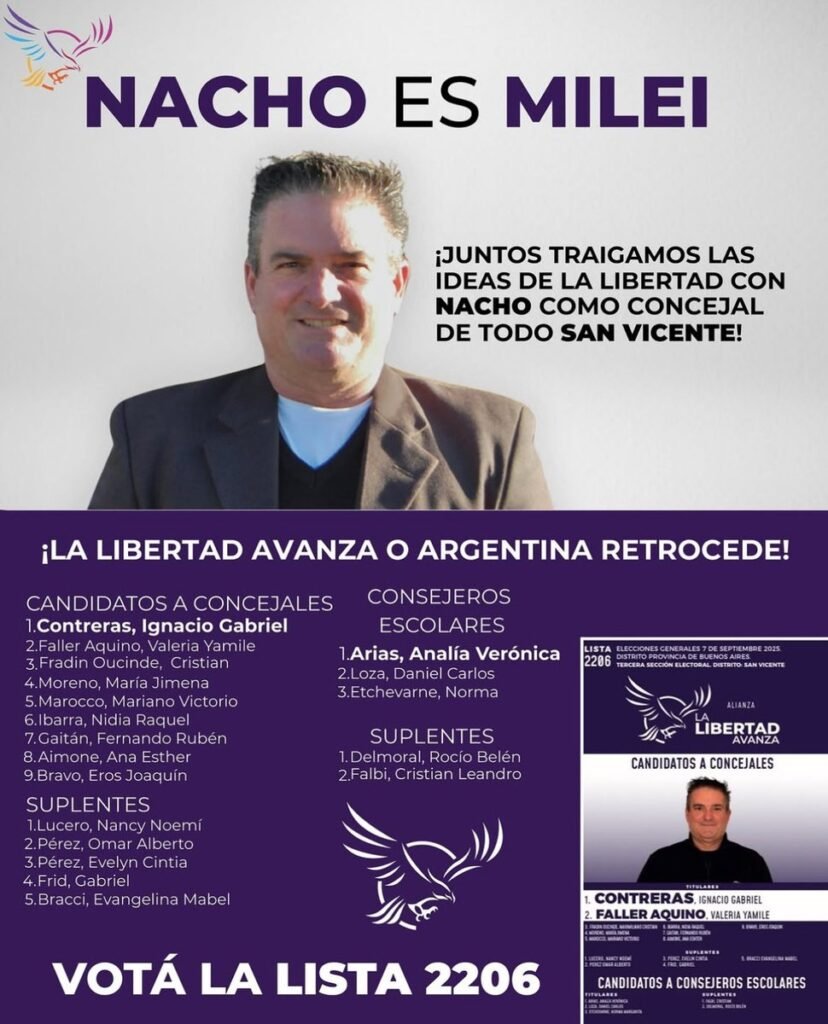 Un concejal electo de La Libertad Avanza, Ignacio Contreras, fue detenido en San Vicente acusado de efectuar disparos durante una discusión con su pareja. Contreras fue elegido en septiembre y asumirá su cargo en diciembre.