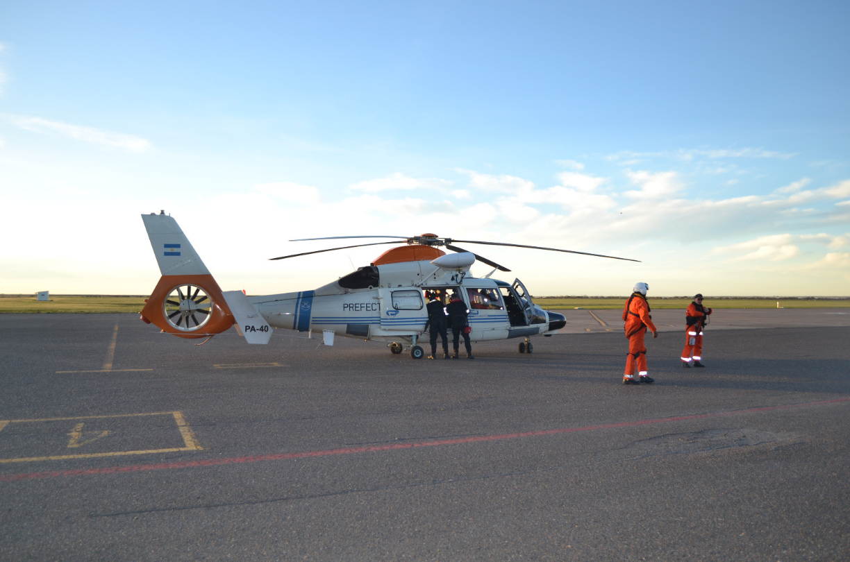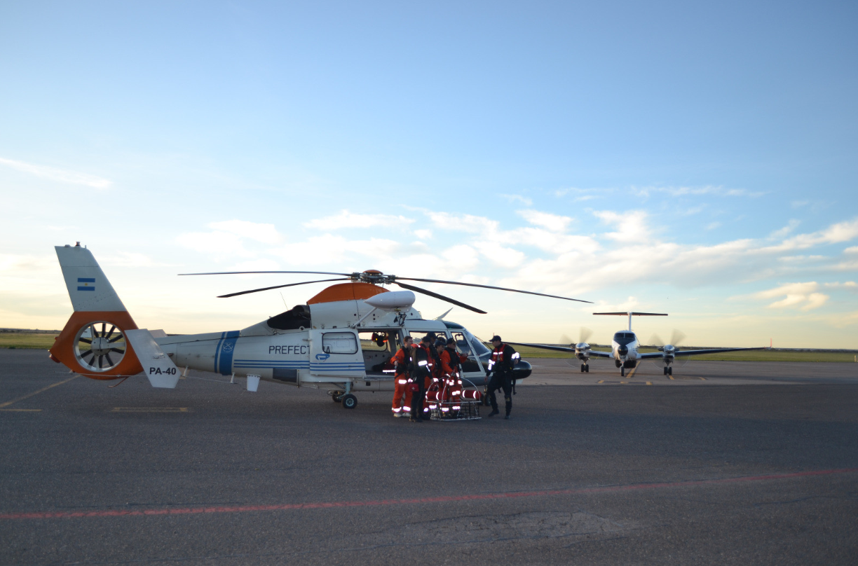 Horas más tarde, con las primeras luces del amanecer, el helicóptero salió nuevamente desde Viedma para interceptar un buque pesquero. En esta ocasión, un tripulante con problemas de salud fue evacuado y trasladado a la capital rionegrina, donde lo esperaba una ambulancia y personal médico local.