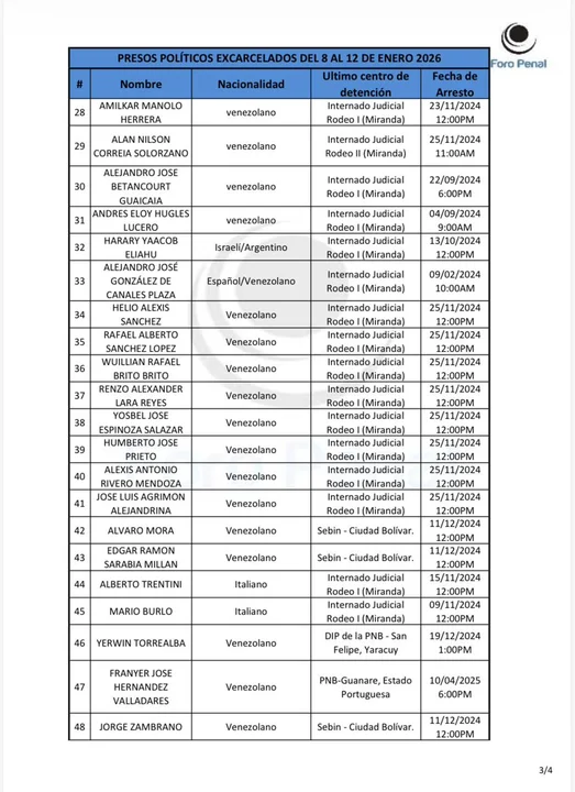 Harari había sido arrestado en octubre de 2024, y permaneció detenido durante más de un año como preso político. Según la ONG, su excarcelación se dio tras la detención de Nicolás Maduro.