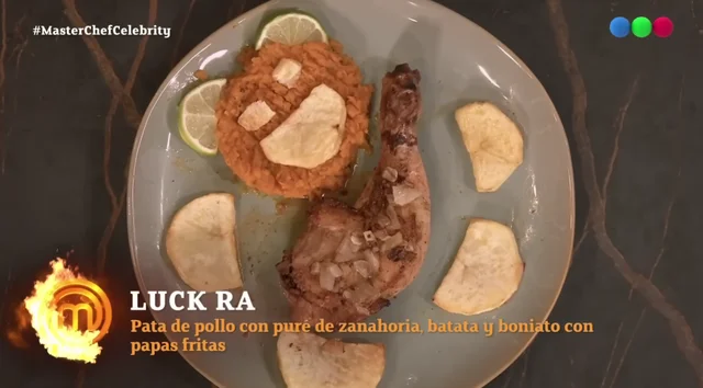 Durante la jornada, el reality presentó uno de sus desafíos clásicos, la cinta transportadora, que obliga a los participantes a cocinar con los ingredientes que van circulando. Luck Ra preparó una pata de pollo con puré de zanahoria, batata y boniato, acompañado de papas fritas, y sorprendió al jurado con un pequeño detalle: un cartel en su estación que decía “No quiero dormir en el sillón, dejame pasar”, en clara referencia a su novia.