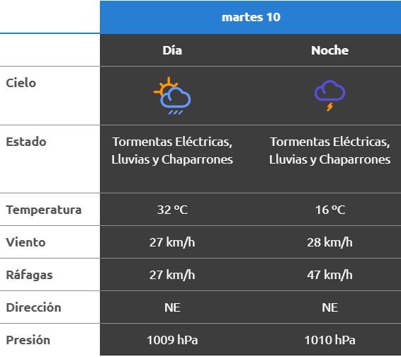 Hacia la noche, el SMN prevé tormentas aisladas, con una temperatura estimada en 25 grados y ráfagas del norte que podrían llegar hasta los 31 km/h.