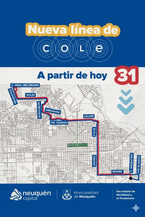 La ciudad de Neuquén sumó una nueva opción al sistema de transporte público con la puesta en marcha de la Línea 31 del COLE, que conecta el Polo Científico Tecnológico con el centro y recorre zonas estratégicas de la ciudad.
