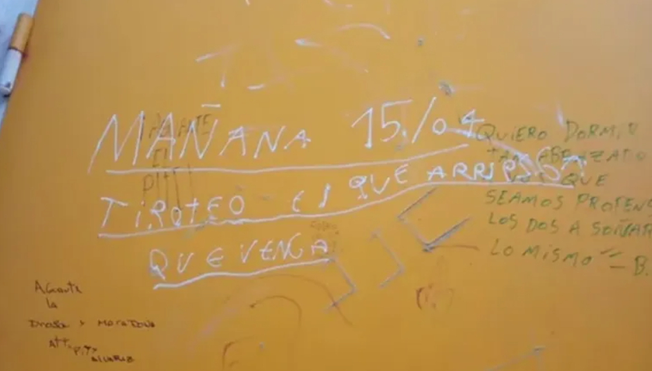El caso también alcanzó a la provincia de Buenos Aires, en la Escuela N°26 de Villa Elisa, donde apareció un mensaje escrito con corrector: “Mañana 15/04 tiroteo, el que arriesga que venga”.}
