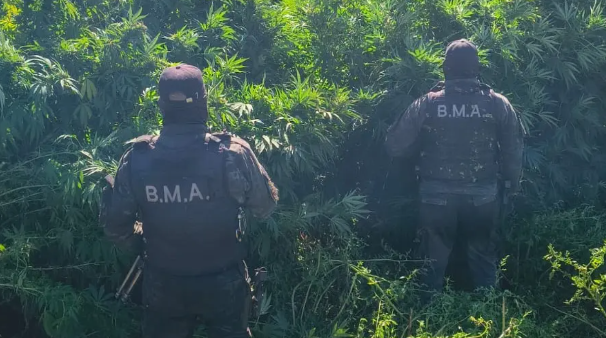 En el lugar, las plantas alcanzaban casi tres metros de altura, indicando un desarrollo prolongado y cuidado. Además, se identificaron tres sectores acondicionados para el secado de cogollos, con flores listas para su procesamiento. También se detectaron signos de actividad reciente, como una garita precaria que funcionaba como punto de vigilancia y un arma de fabricación casera instalada en la pared.