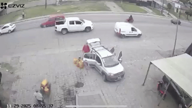 Las cámaras de seguridad captaron el instante en que el auto robado embistió al hombre y cómo los policías intentaron frenar la fuga arrinconando el vehículo. Aun así, los ladrones lograron continuar la huida hasta que finalmente fueron alcanzados.