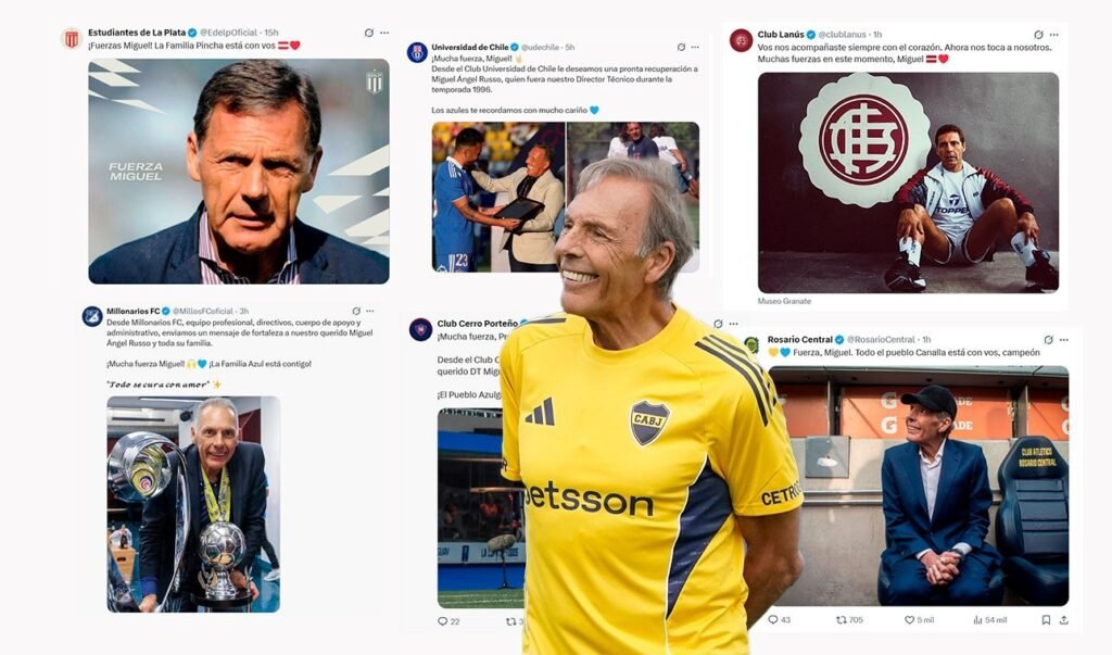 La preocupación por el estado de salud de Miguel Ángel Russo movilizó al mundo del fútbol. El entrenador de Boca Juniors, de 69 años, se encuentra internado en su domicilio con pronóstico reservado, y distintos clubes, futbolistas e instituciones se expresaron públicamente para enviarle fuerzas en este difícil momento.