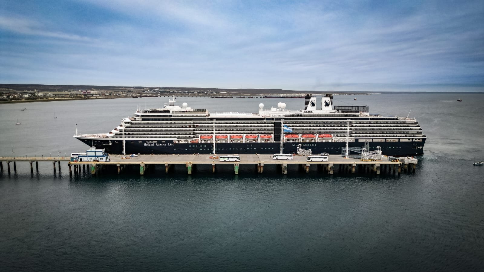 El crucero, de 285 metros de eslora y bandera de Holanda, arribó minutos antes de las 8 de la mañana al margen norte del Muelle Comandante Luis Piedra Buena, procedente de las Islas Malvinas. Durante su estadía, los visitantes recorren la ciudad y disfrutan de los atractivos turísticos, culturales y gastronómicos que ofrece Puerto Madryn y la Comarca VIRCh-Valdés.