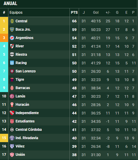 Aun así, River mantiene chances matemáticas de clasificarse al máximo certamen continental. Para lograrlo, primero deberá ganarle a Vélez en Liniers y, además, esperar que Argentinos Juniors no derrote a Estudiantes en La Plata. Si el Bicho empata, el Millonario tendrá que superarlo por diferencia de gol.