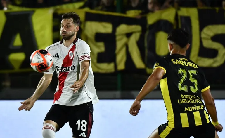 El partido, disputado en el estadio Domingo Burgueño Miguel, tuvo un inicio trabado y marcado por infracciones. River intentó controlar la pelota y avanzar por los laterales, con chances destacadas como un remate alto de Matías Viña, mientras que Peñarol respondió con la situación más clara del primer tiempo: Abel Hernández quedó mano a mano con el arquero, quien lo neutralizó antes de que el delantero sufriera una lesión y fuera reemplazado por Facundo Batista.