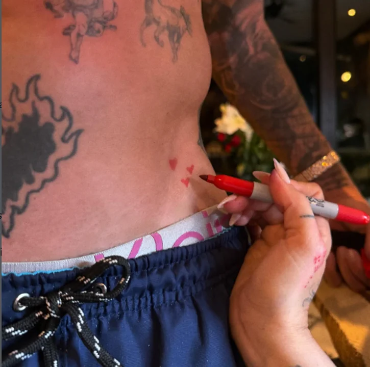 Uno de los elementos que generó más comentarios fue un tatuaje reciente de De Paul, formado por tres pequeños corazones dibujados sobre el costado del abdomen de Tini Stoessel. Los fanáticos interpretaron los “tres corazones” como un símbolo de la pareja y la posible llegada de un hijo.