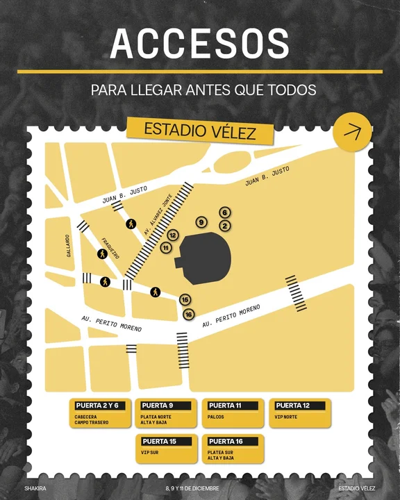 Además, la organización difundió un mapa con los distintos accesos según cada sector de entradas, que incluirá seis puertas habilitadas.