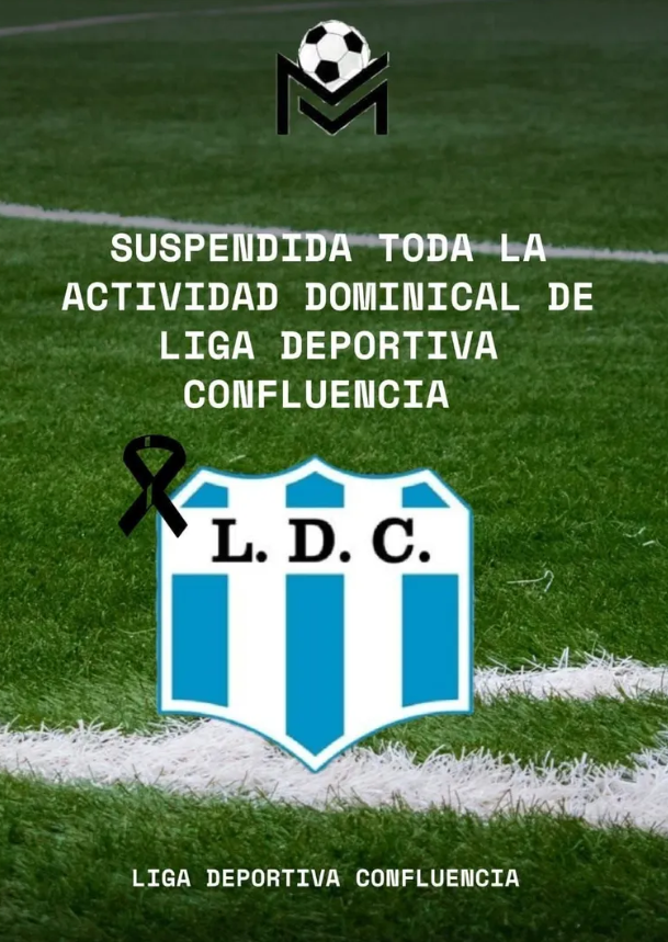 La magnitud del hecho llevó a la Liga Deportiva Confluencia a suspender todos los encuentros de la jornada, priorizando el acompañamiento a la familia y la contención de los niños y jóvenes que participan en el torneo.