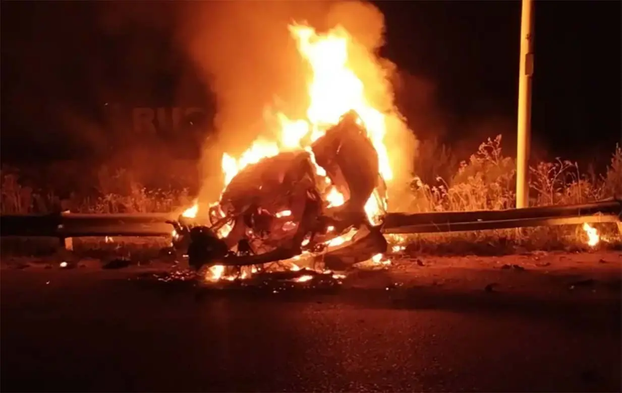 Según información oficial, el accidente ocurrió alrededor de la 1 de la madrugada, en el sector de 25 de Mayo y la Colectora, cuando un Volkswagen Suran en el que viajaban cinco personas volcó, impactó contra el guardarraíl y se incendió, quedando completamente consumido por las llamas.